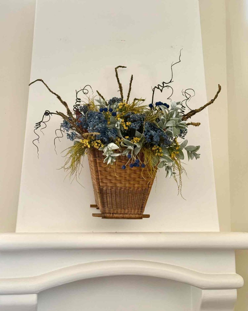 I bought this vintage basket at Christmas and filled it with Christmas greens. I filled it with a mixture of dried and faux florals for Spring