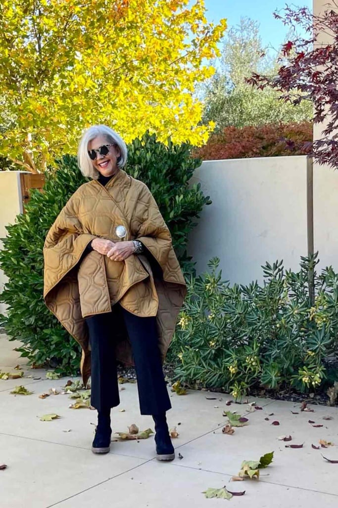If you have been reading this blog long you know I am a big fan of capes and wraps. I love them because they can be styled so many ways and they are very practical in our climate.