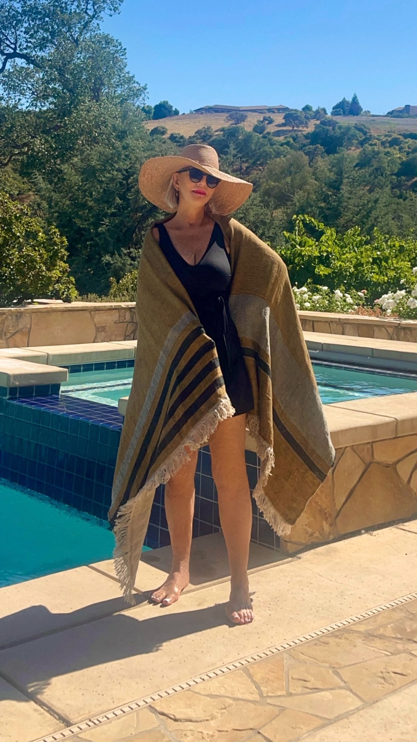 you look gorgeous and so elegant in your black maillot with that gorgeous hat and shades.