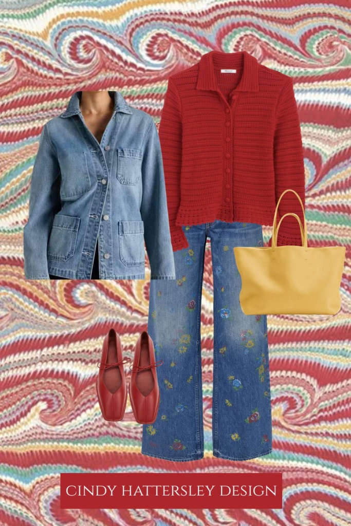 I ordered the red cardigan from Madewell and love it. I am coveting the Mother jeans with the painted flowers. I plan to order the Quince chore jacket..Love the butter yellow Cuyana bag, The shoes are highly rated from Amazon and come in lots of colors and fabrications.