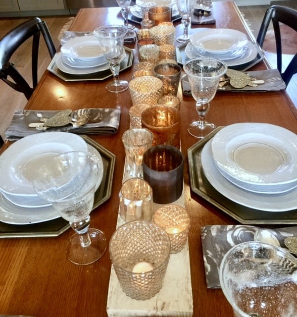 Roxanne's dining room and table scape is beautiful and I can just see it at night – stunning.