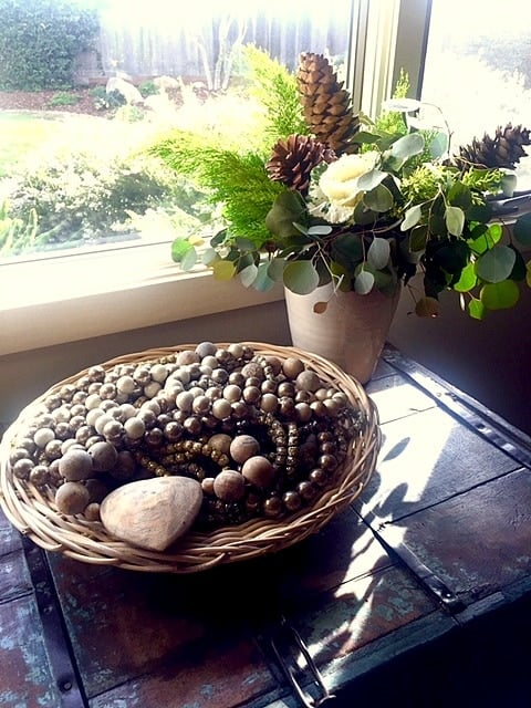 Near the window she gathered all her beads that weren’t used elsewhere; and displayed them artfully in this basket.
