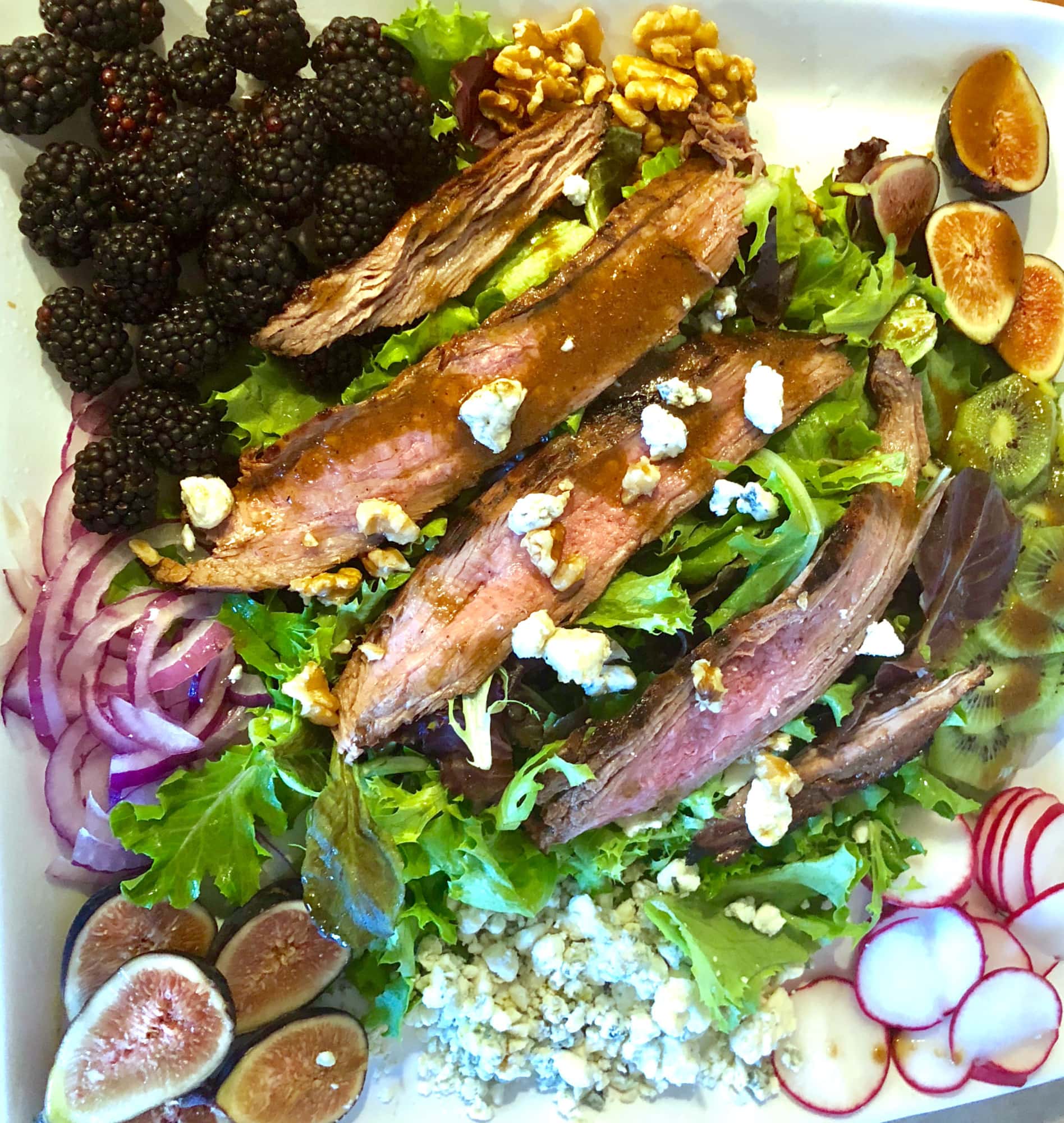 I am always on the hunt for salads that do not require any cooking this time of year. This flank steak salad with blue cheese, figs, blackberries, and kiwi fits the bill. Today I am joining Mary Ann (Classic Casual Home), Annie (Most Lovely Things), Elizabeth,(Pinecones and Acorns) and Sue (View from Great Island) and we are sharing some of our favorite summer salads.