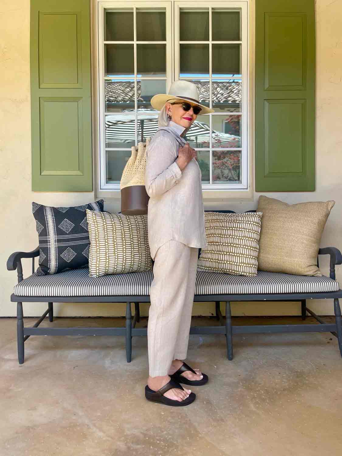 I post seasonally on linen. You might enjoy my popular post from last year ,How to Style Linen after 50 here, or Stylish Waysto Transition Linen to Fall here.