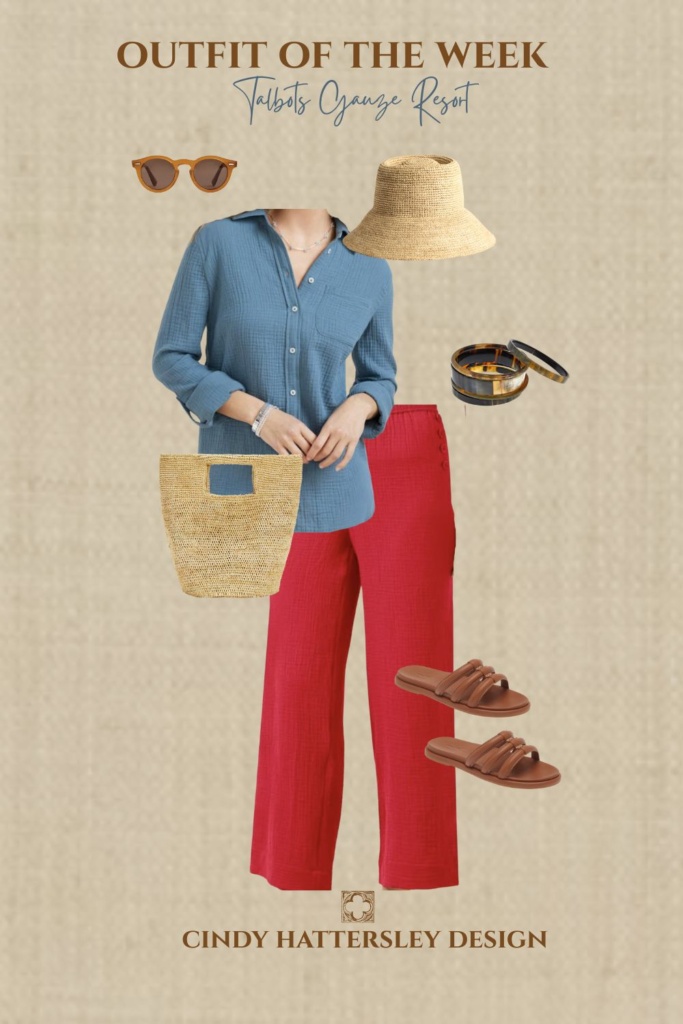 Hi Cindy. I might wear the red gauze set from Talbots – it’s rather nice and you look super in all the others as well. Obviously, we are wearing Michelin Man layers here in our winter, so I look forward to seeing how our summer eventuates.
