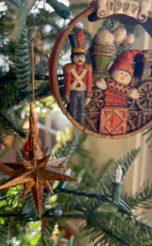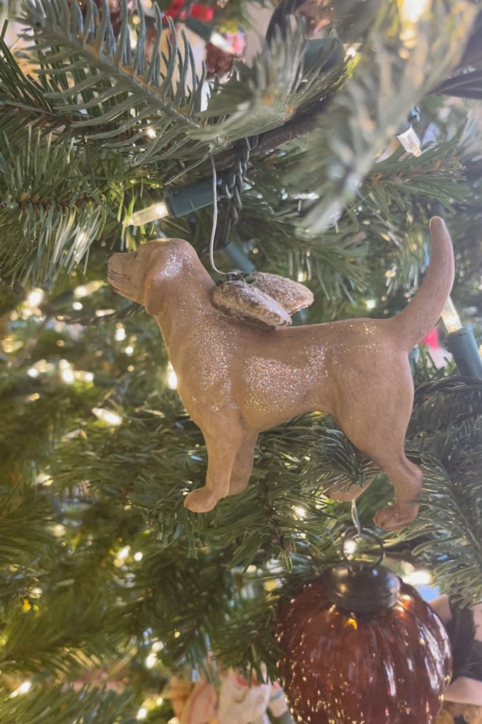 If you look closely you can find ornaments that my children made in pre-school, ornaments from our travels, from treasured friends & family, and loved pets no longer with us. If you love a collected/heirloom tree, you might enjoy the reel I did on Instagram of my tree here.