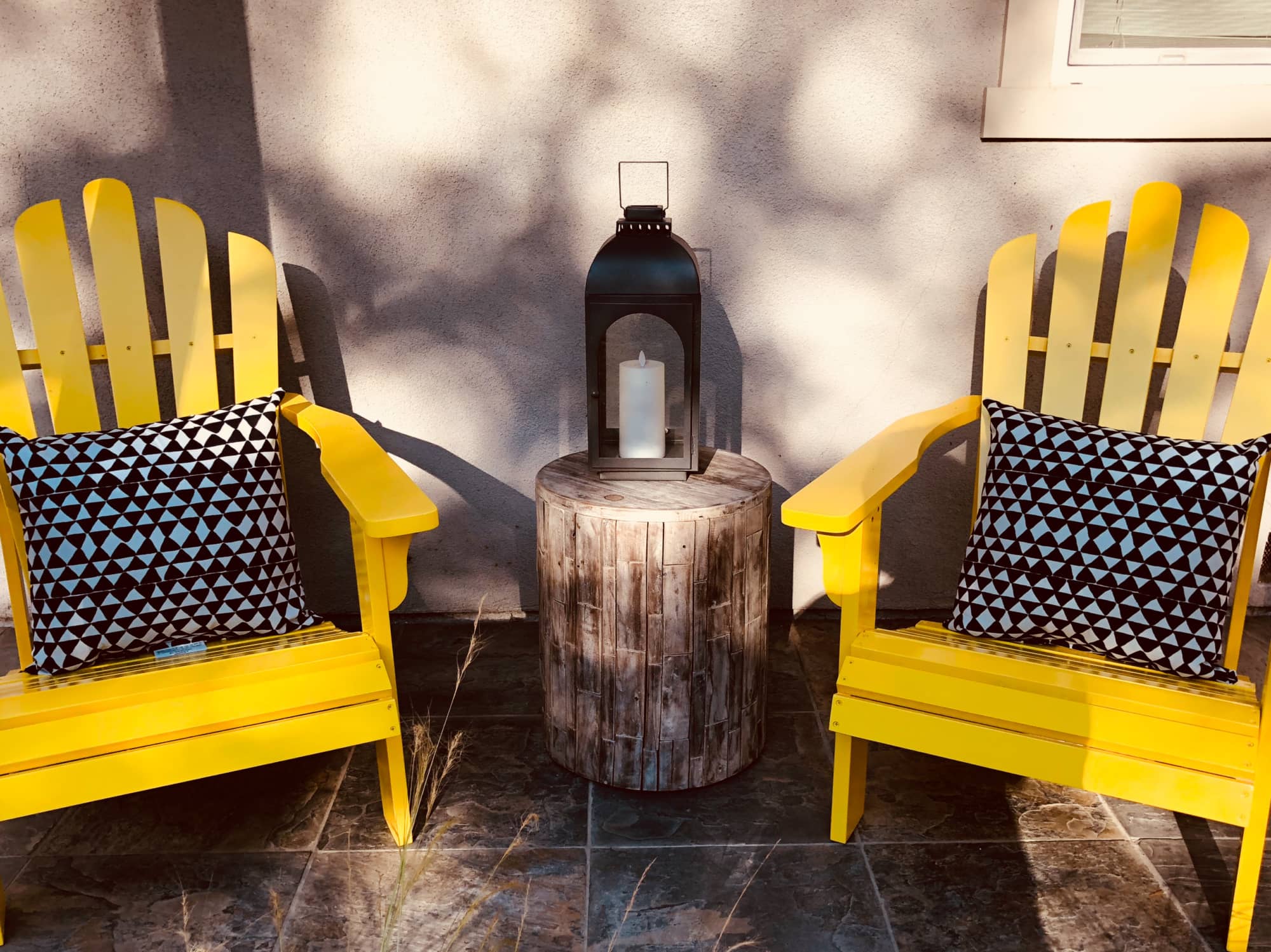 Once they painted the door we all agreed some budget-friendly Adirondack chairs in yellow would add a punch of color to the character lacking front porch.