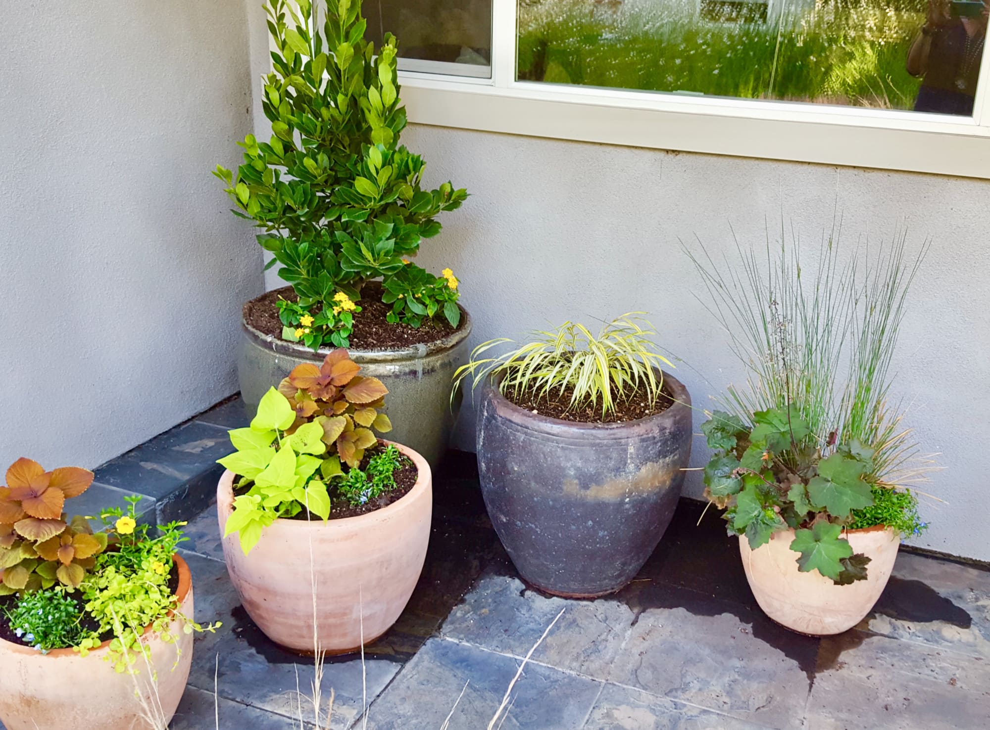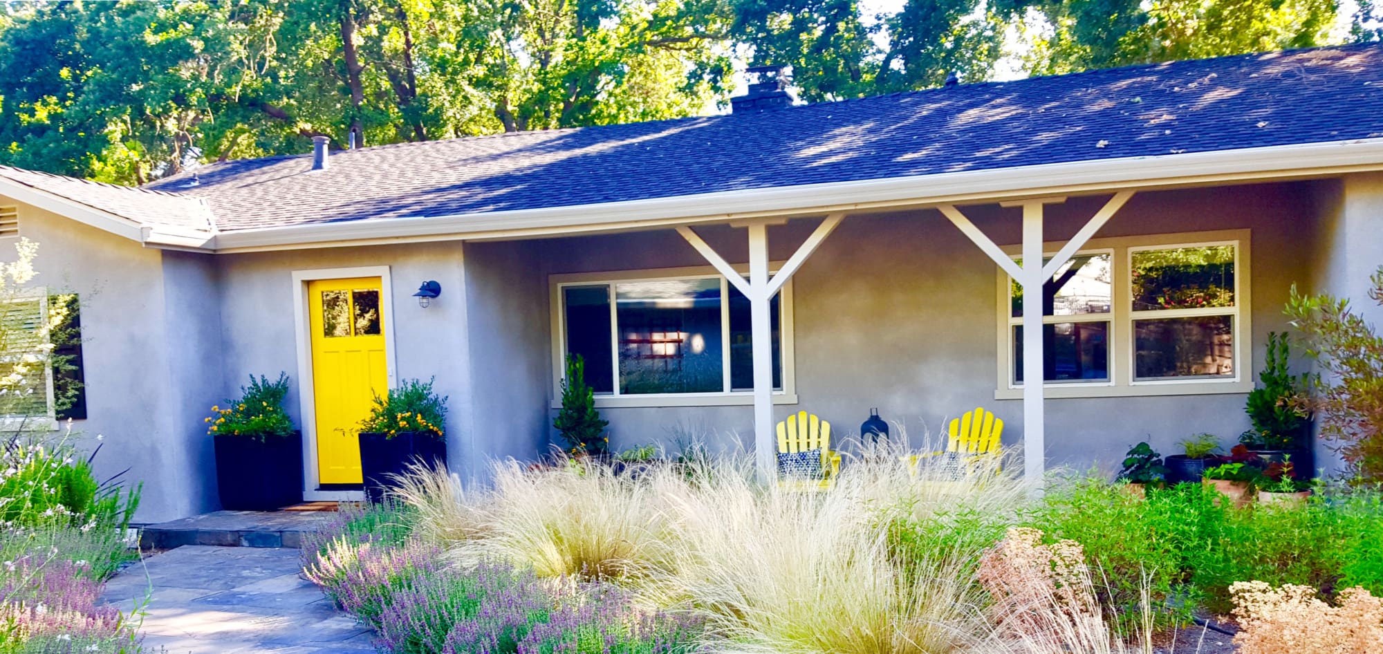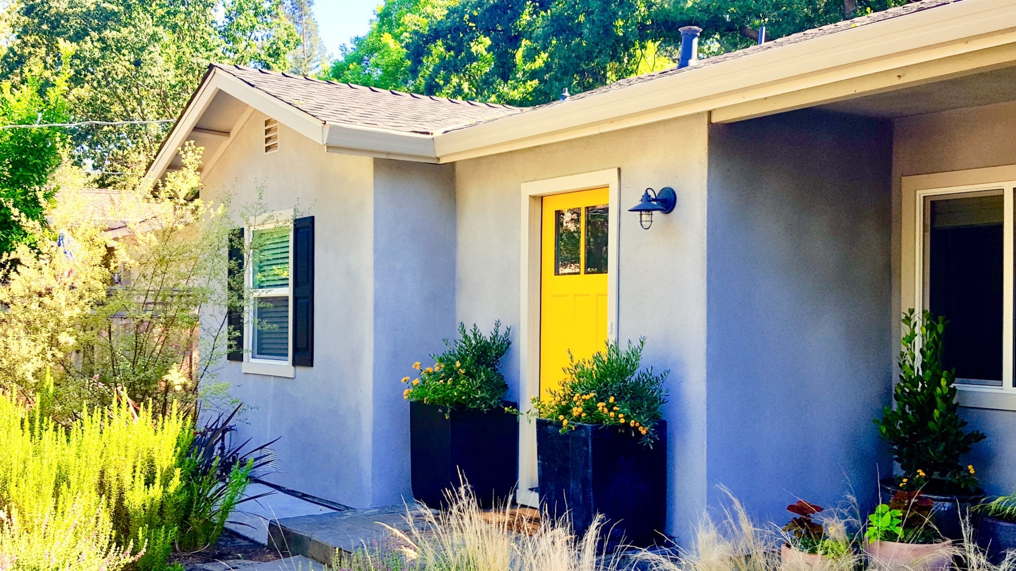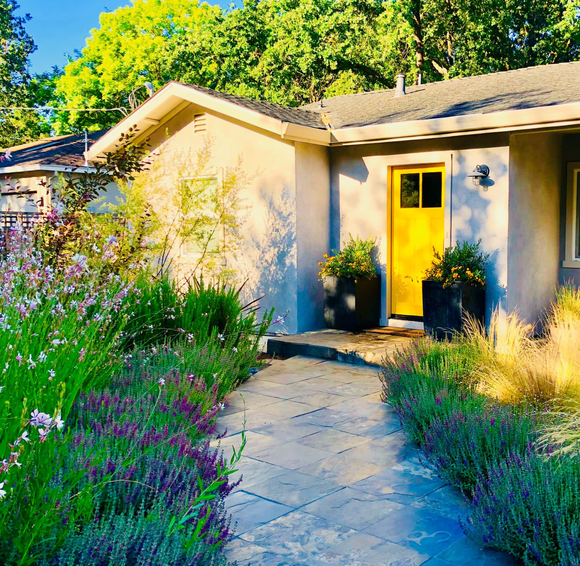 A wonderful improvement and so full of promise. Nice to see young house love in action. The yellow is such an optimistic note and the planters by the front door are elegant and handsome—and a bargain to boot. I always appreciate gardens that look like where they are, and this is very much a California garden. It very much an ode to Summer.