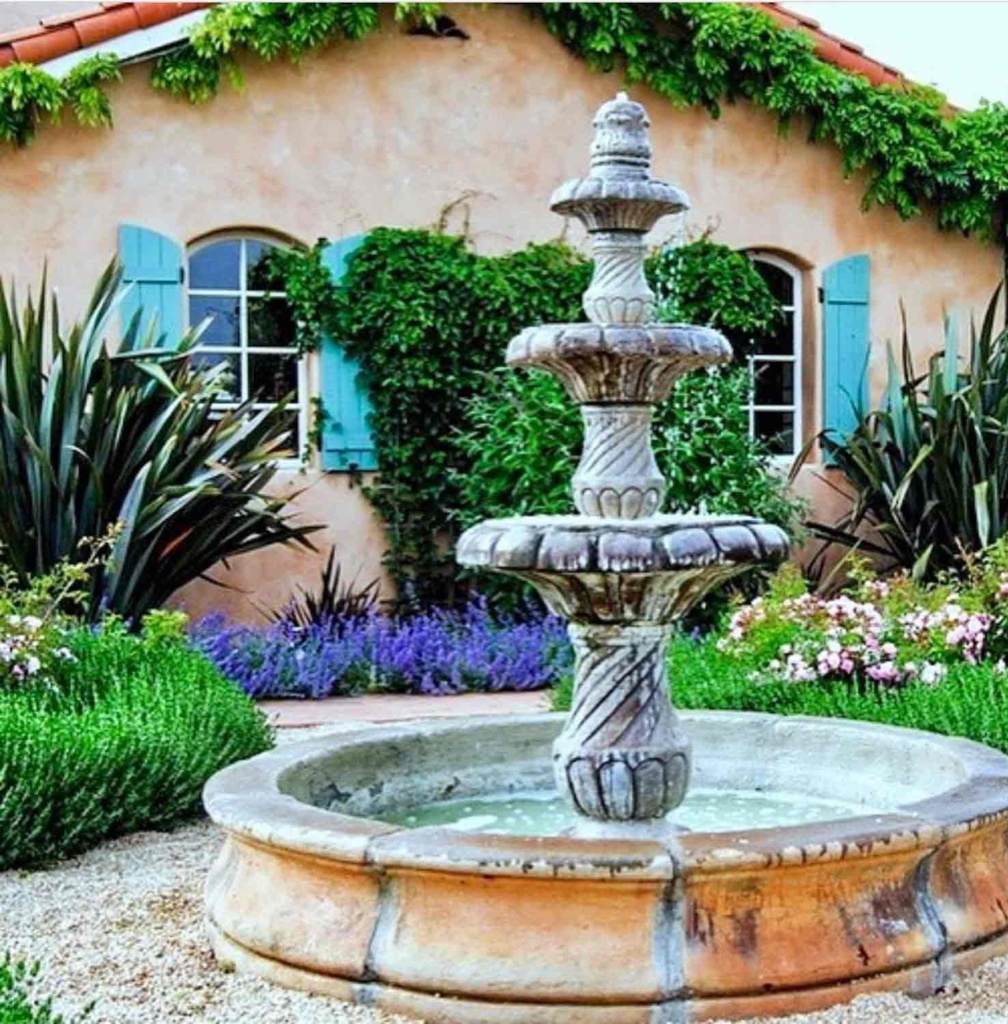 Our courtyard fountain at our current home . The former owners purchased the bowl in France.