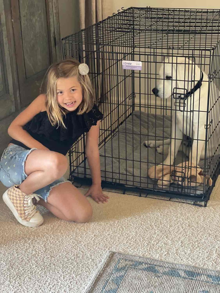 I’ve become a full-on fan of crate training—though, to be honest, we never really stuck with it for our other labs. Not sure why… selective amnesia, maybe? This time, we actually followed through, and Scouty happily slept in his crate for over a year. Of course, that all unraveled when he wasn’t sleeping that well and we invited him into our bed (We swore we would never let a dog sleep there again)…These days, he still loves his crate when we leave the house—especially if there’s a bully stick involved.