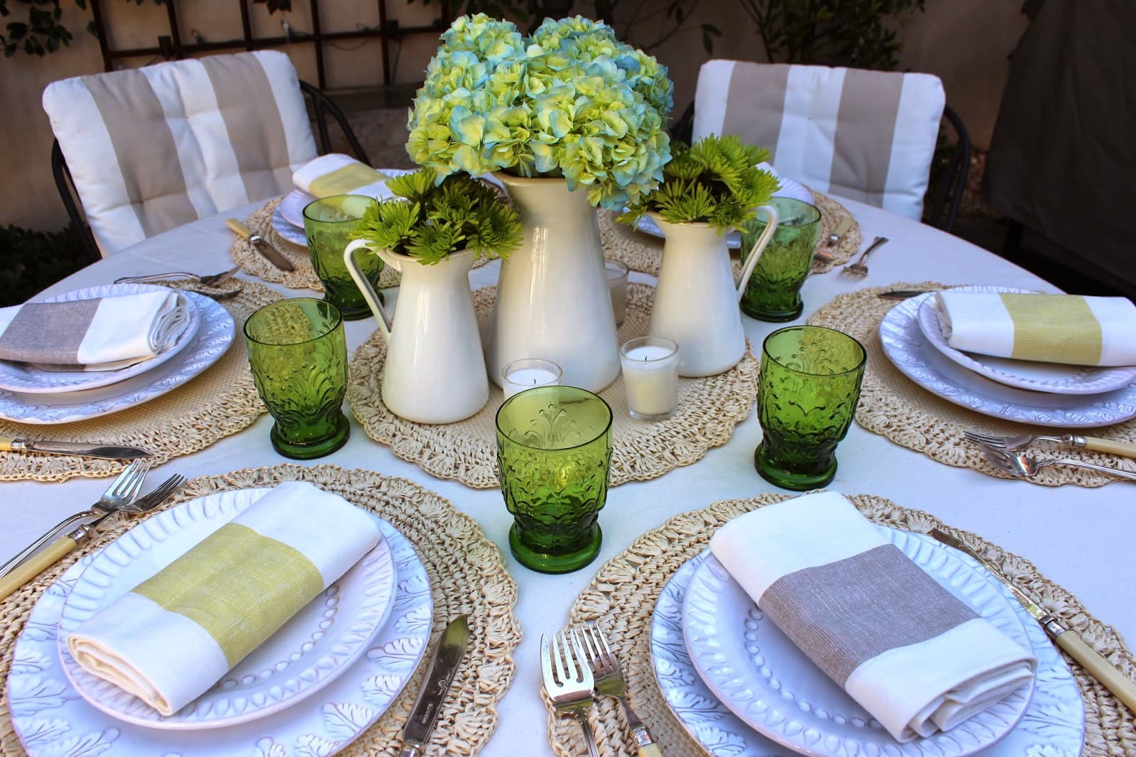 Mary Ann often finds treasures at Home Goods to spruce up her own table settings. I love these crochet looking mats she used here. I see we have the same fabric on our outdoor chairs as well!
