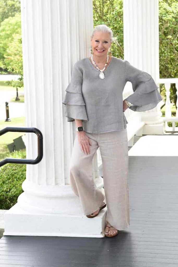 The linen blouse was from Cobblestone Living and is no longer available.