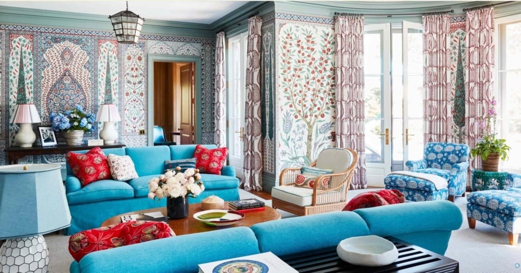 Interior Designer Katie Ridder is known for artfully mixing color, pattern and texture. I love how she incorporates red in her interiors without it being “in your face”. You can see all of Katie’s beautiful designs on her website here .