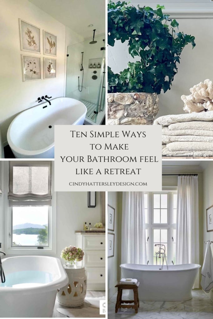 Does your bathroom feel more well functional, rather than a comfy oasis? I am working on a few simple tweaks to make my bathrooms a little more welcoming and will share the results soon. In the meantime, let’s see if we can get some inspiration from the pros. With a few simple tweaks, you can transform your bathroom into a luxurious retreat that’ll make you feel special every time you step inside. I am joining some creative friends today for some bathroom inspiration. Let’s dive into ten simple to make your bathroom feel like a retreat.