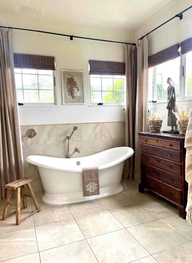 So agree – The dough bowl & small stool added in the modern bathroom makes all the difference in that bathroom feeling more organic & welcoming rather than cold, sterile & commercial! And it still remains unfussy for those that like more modern, “clean” lines.