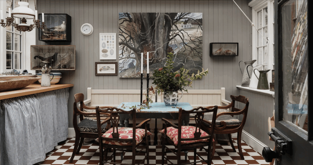 Artists Brita Granström and Mick Manning’s Georgian house in Berwick-upon-Tweed, is a testament to the beauty of abundance. It is a masterpiece of collected curated color and pattern, radiating a wonderful, lived-in charm. The home’s rich aesthetic reflects and mirrors the essence of their creative work. It is beautifully photographed by Elliot Shepherd