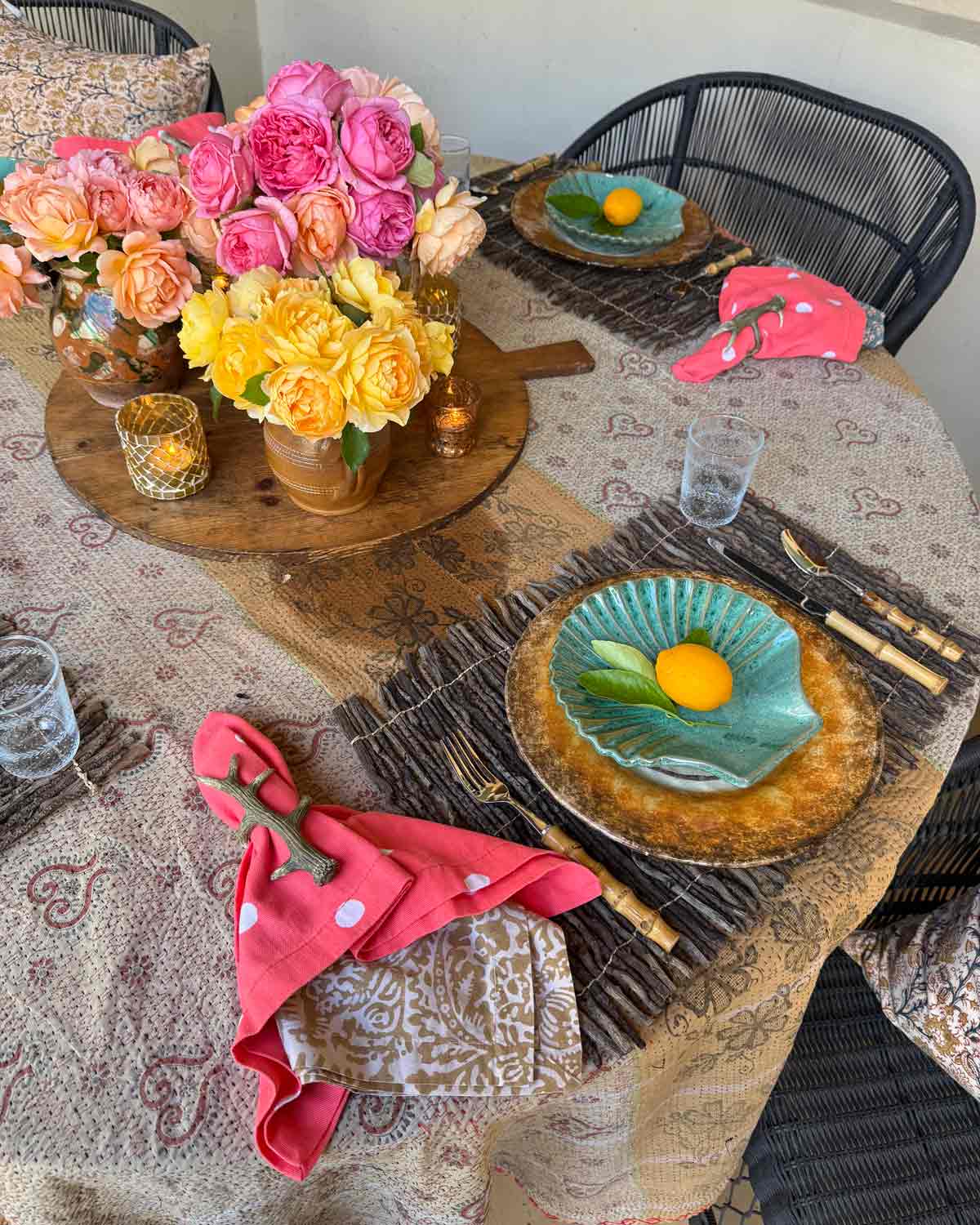 Great post! All the table scapes are beautiful. I like to host family meals from time to time. I used to do that a lot for children, grandchildren and even great grandchildren. Our family has grown in the past few years which I love. I am now 85. I still want to do this but it has to be something easy. I rely on store bought a lot and have found that’s just fine with everyone. It’s the getting together that’s important. Always enjoy your posts! Love your style. I find I lean toward the Boho style in my wardrobe and my home decor. I have to tone it down some but the unmatched look is what I like. Many blessings.