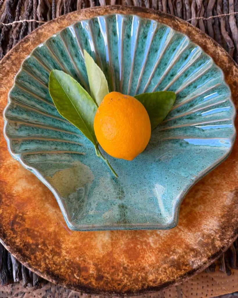 The lemon with leaves was just for the photo shoot. I was gifted those lovely plates and wanted them to look extra pretty!