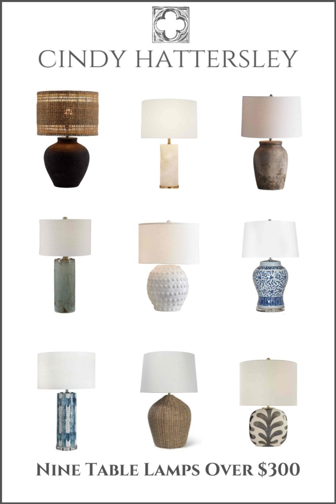 If you can afford it, some beautiful lamps are worth splurging on. Most of these are under $500. I have featured. I love the big, chunky, knobby version from Ballard, and the black pottery base with the woven shade from Crate and Barrel would look fabulous in my den.