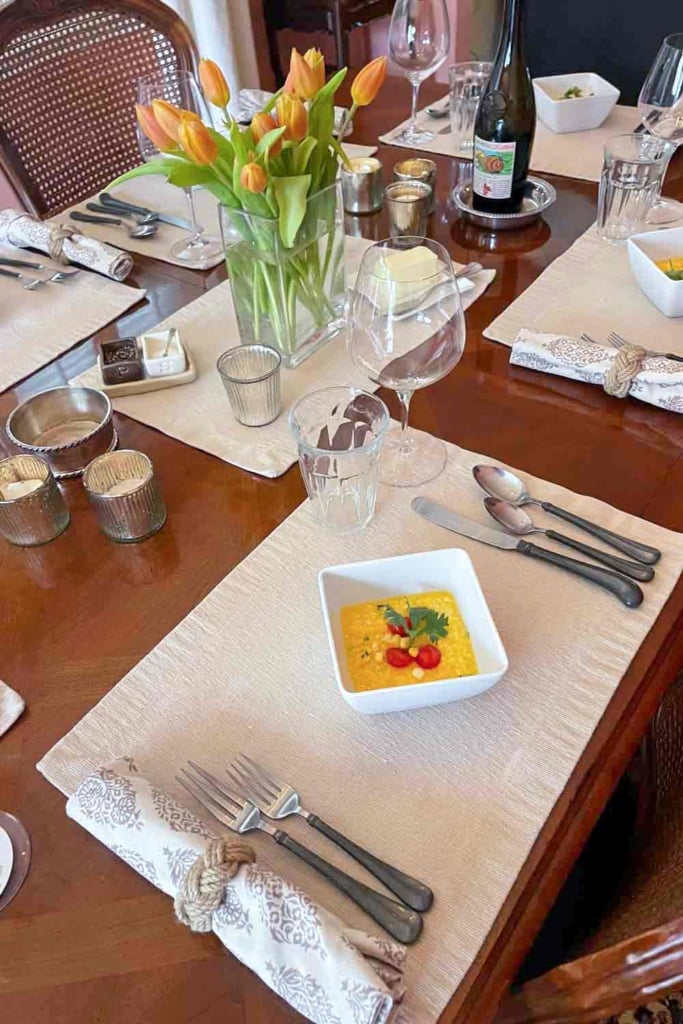 Wren prepared this delicious sweet corn gazpacho as a starter.