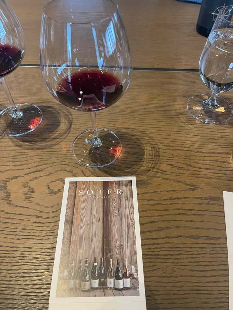 Our final stop was at Soter Vineyards (another favorite). The winery was designed by esteemed architect Howard Backen of then Backen Gilliam Architects. This winery also is in harmony with the land. It mirrors the look of some of the barns in the area in a modern way. Our was extremely knowledgeable, and the wines were wonderful. You are met at the entrance with a glass of their sparkling wine.