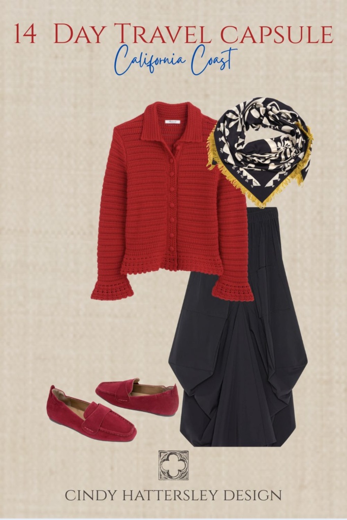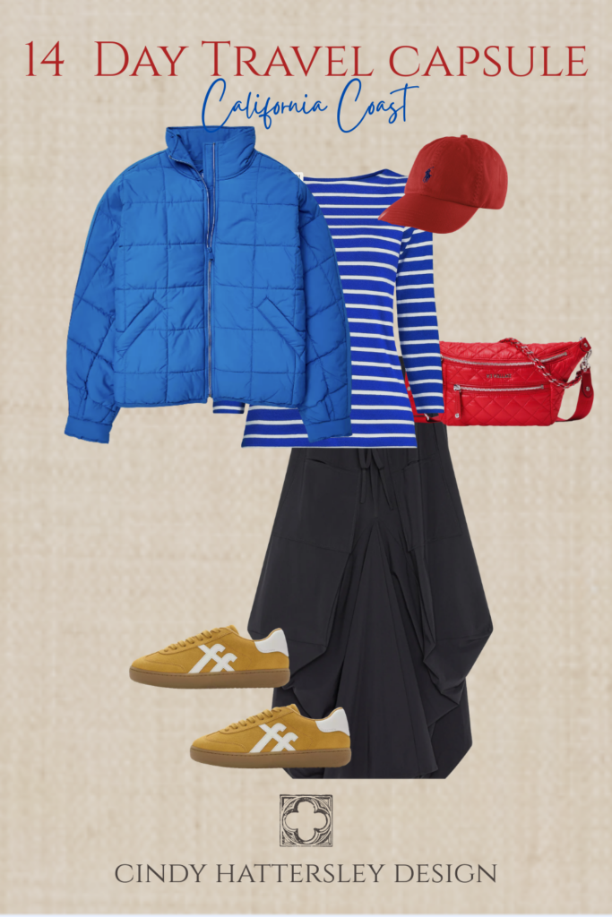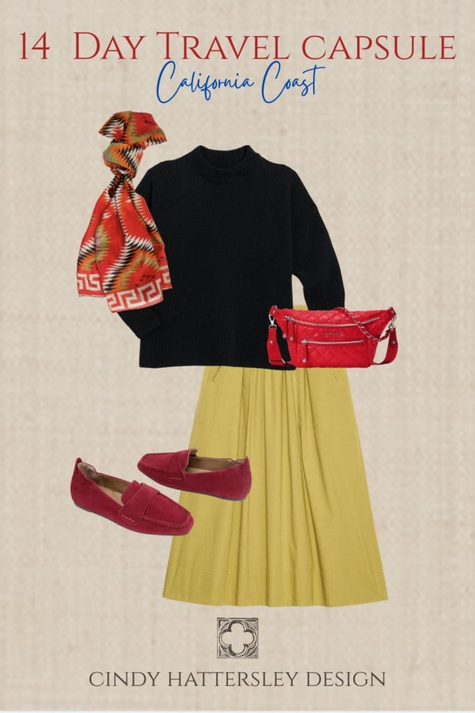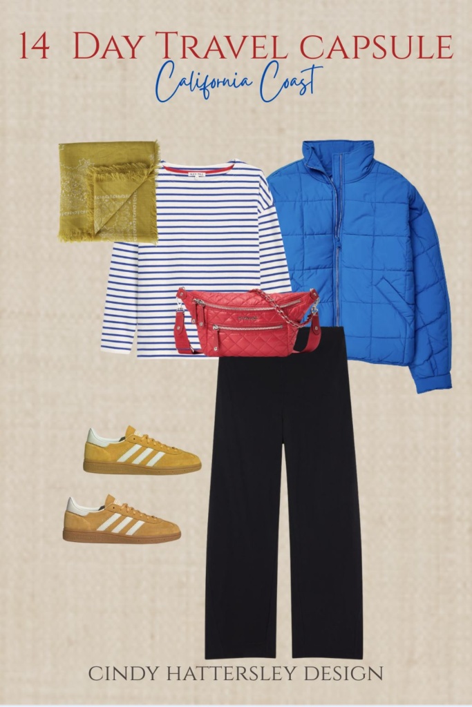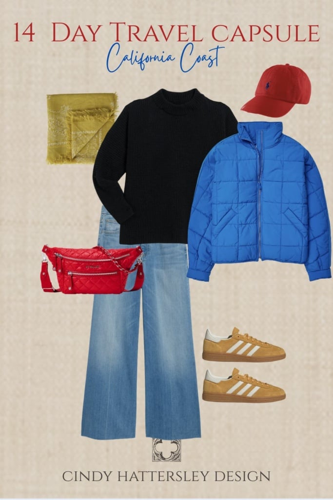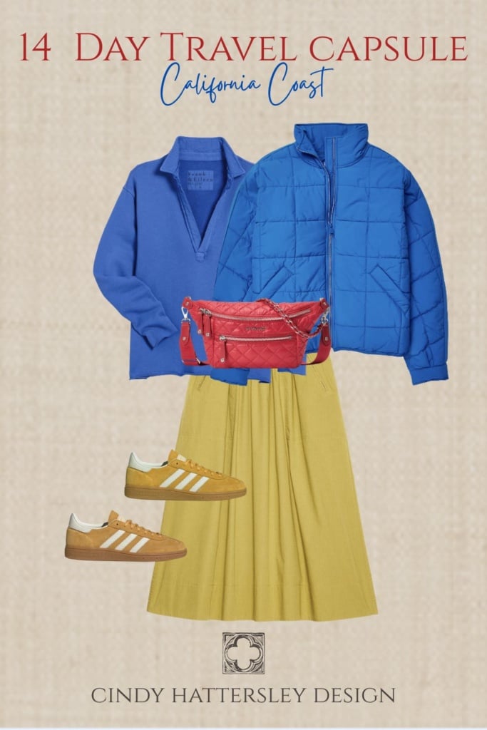 I am joining my pals Susan, Annie, and Mary Ann today for a winter/early spring travel post. I am not going anywhere for a couple months but after visiting the coast last weekend I imagined myself as a tourist. The shoulder season can be a beautiful time to visit California. If you haven’t been here before imagine yourself standing on a bluff overlooking the Pacific, but instead of enjoying the view, you are shivering because you packed for sunny California beach weather. The coastal reality delivers something completely different: morning fog, afternoon sun, evening chill, and everything in between. Most first-time visitors to the California coast make the same packing mistakes, bringing either too much or the wrong things . The good news is that with the right approach (layering), you can pack everything you need in a single suitcase. Let’s chat about what to pack for a 14 day California coast trip for women over 50.